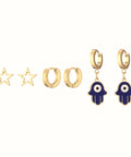 Juego de aretes en color dorado.