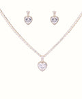 Juego collar finito de noche con dije y aretes en forma de corazon.
