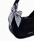 Bolso mediano con mascada. Asas de hombro fijas. Incluye asa bandolera ajustable y removible.