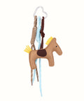 Una pieza artesanal con texturas de cordón y un diseño de pony en tonos neutros. Incluye colgantes coloridos que aportan un estilo bohemio y único.