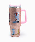 Termos de acero inoxidable con diseño vaquero y piedras incrustadas
