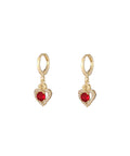 Aretes en forma de corazón con un diamante rojo
