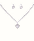 Juego collar finito de noche con dije y aretes en forma de corazón.