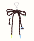 Este elegante moño de cuerda destaca por su estilo minimalista y detalles de cuentas en tonos pastel, ideal para darle un aire femenino y moderno a tu bolso.